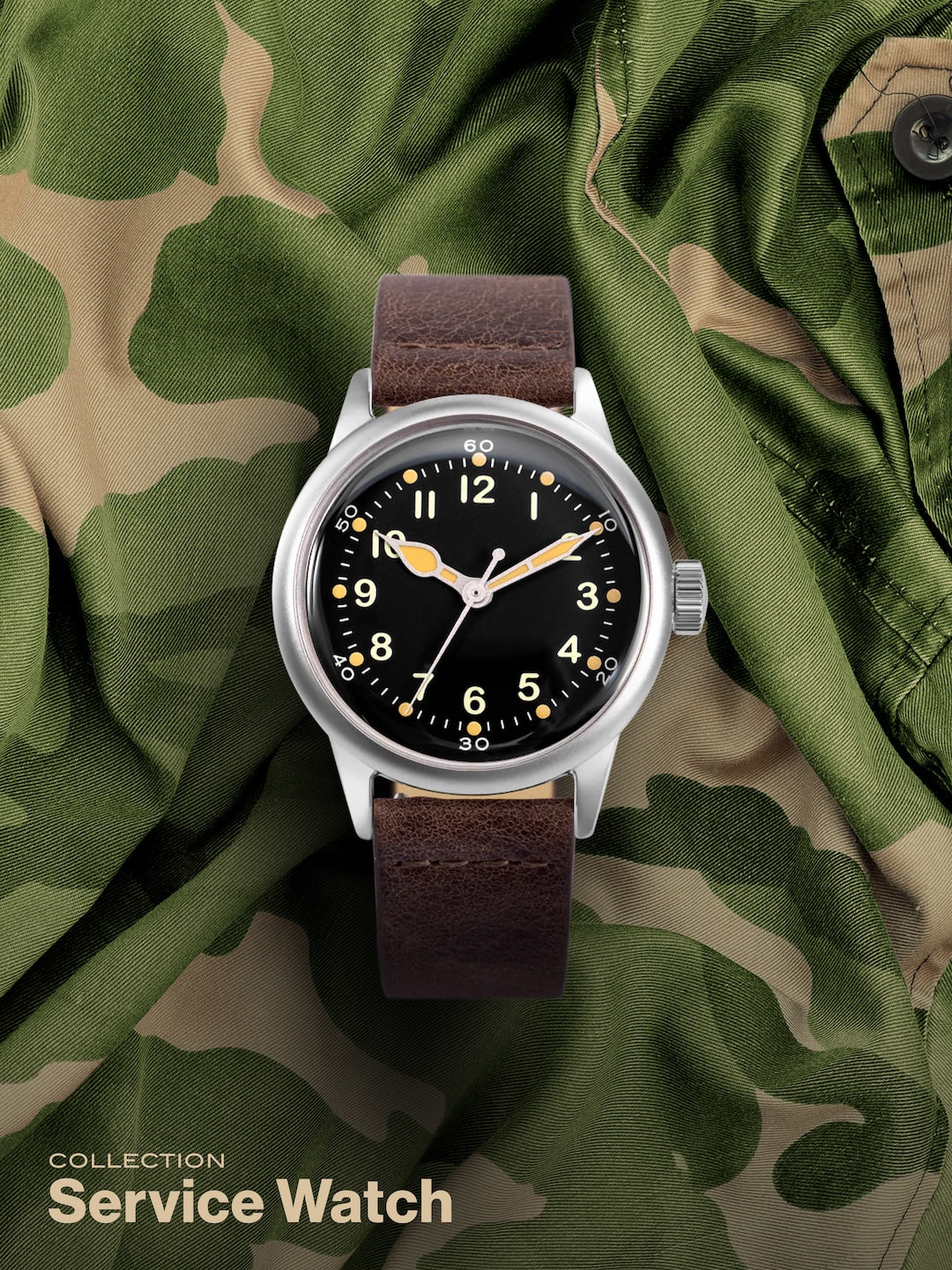 With its stainless steel case & 10 ATM water-resistant construction, the Type 44 is definitely more rugged than the originals. Its Swiss-made Landeron L21 movement will also guarantee you a level of precision & functionality that a 80y/o original A-11 cannot.