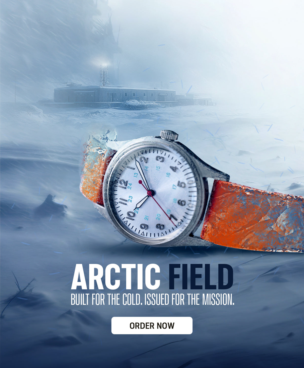 The case resists corrosion, impact, and rapid temperature shifts. Built as an issued-grade tool for the northern frontier, the Arctic Field carries only what cold-weather operations require.