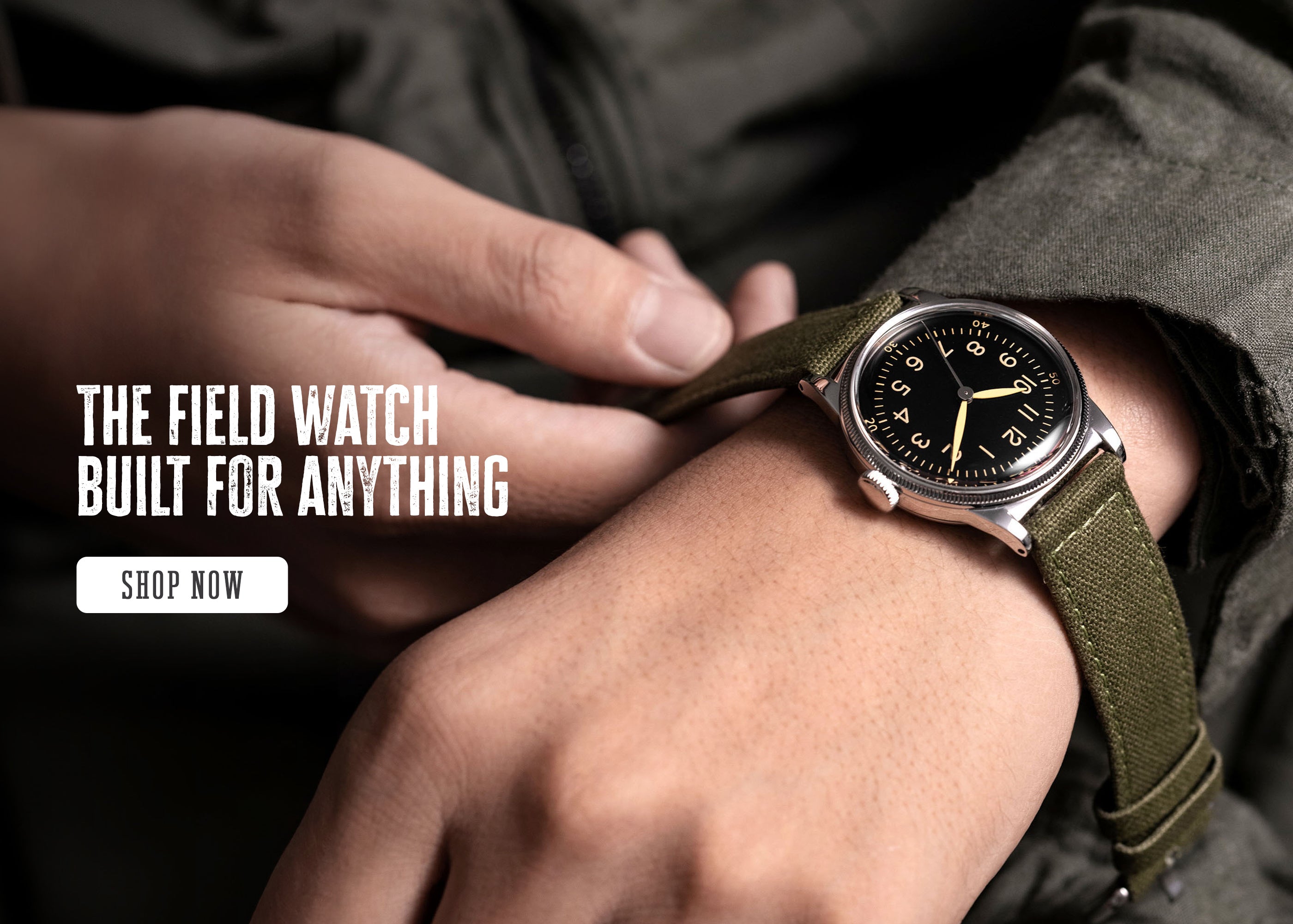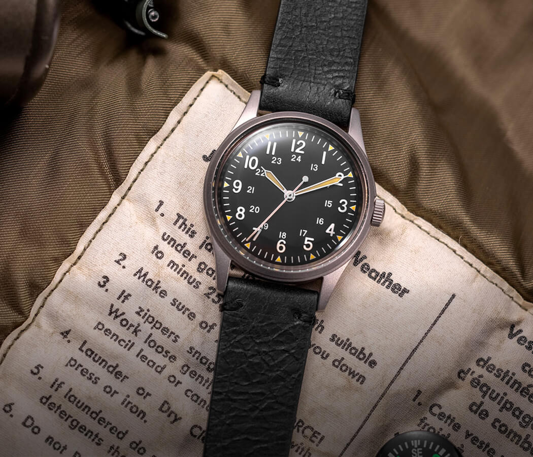 We've gotten as close as we could to the original 1944 A-11 we purchased as a benchmark. You'll notice that our Type 44 and, the vintage A-11 do not have a second hand counter-balance. A-11s originally did but ours had its own broken off during its lifetime. A mark of its age, we decided to keep that lack of counter-weight for absolute authenticity.