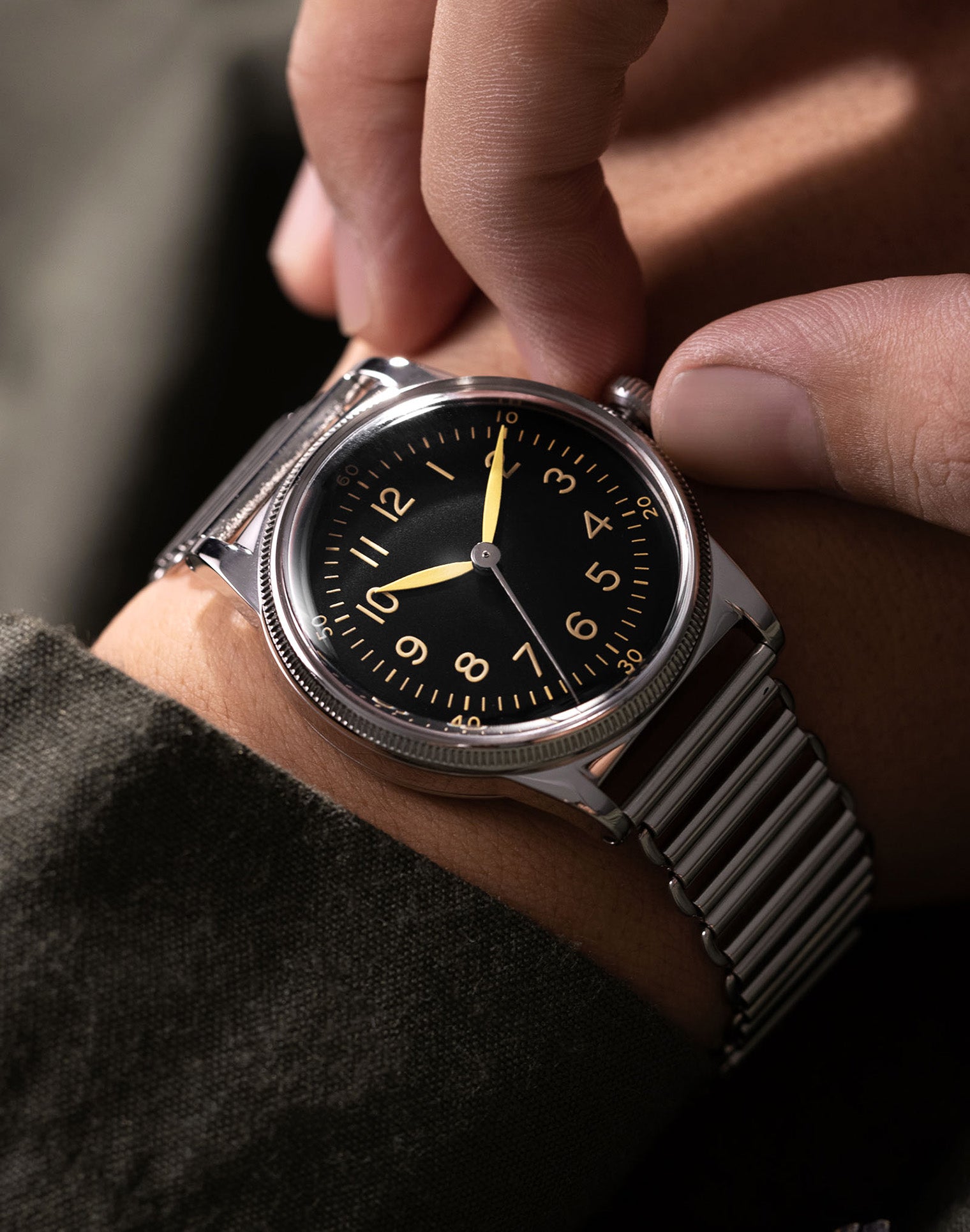 With its stainless steel case & 10 ATM water-resistant construction, the Type 44 is definitely more rugged than the originals. Its Swiss-made Landeron L21 movement will also guarantee you a level of precision & functionality that a 80y/o original A-11 cannot.