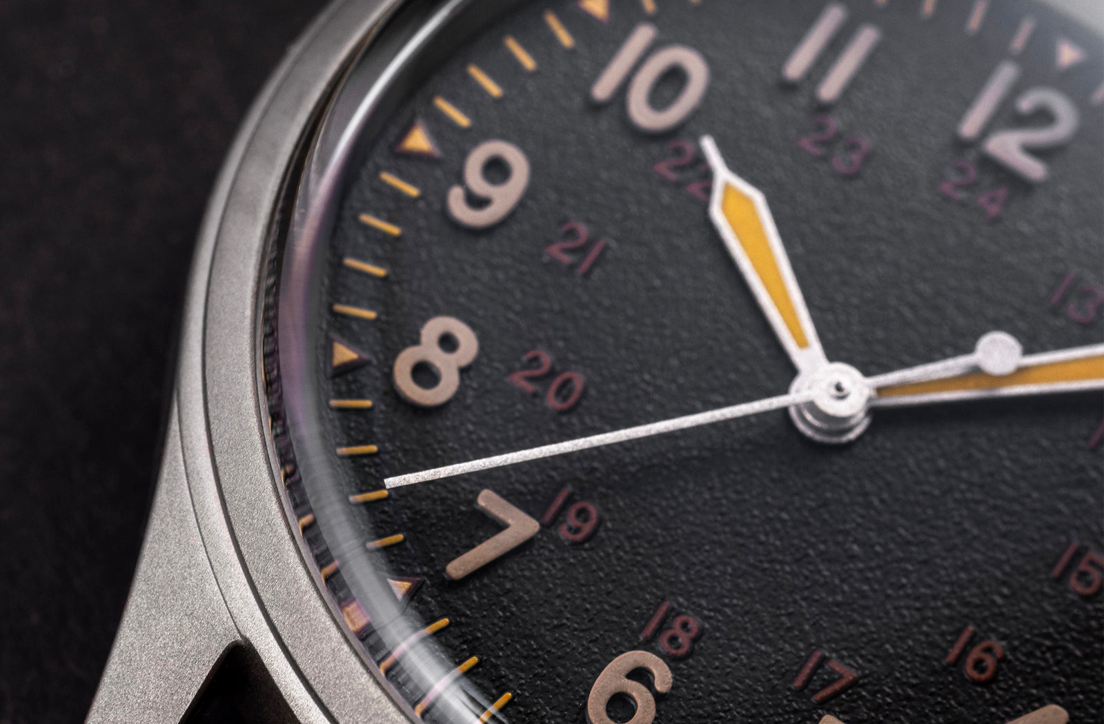 The Desert Field pays hommage to the iconic GG-W-113 design developed by the US-Military for its pilots in 1967. Featuring a 24H inner-ring and absolute legibility of the indexes, the "Field" in Desert Field is pretty self-explanatory.