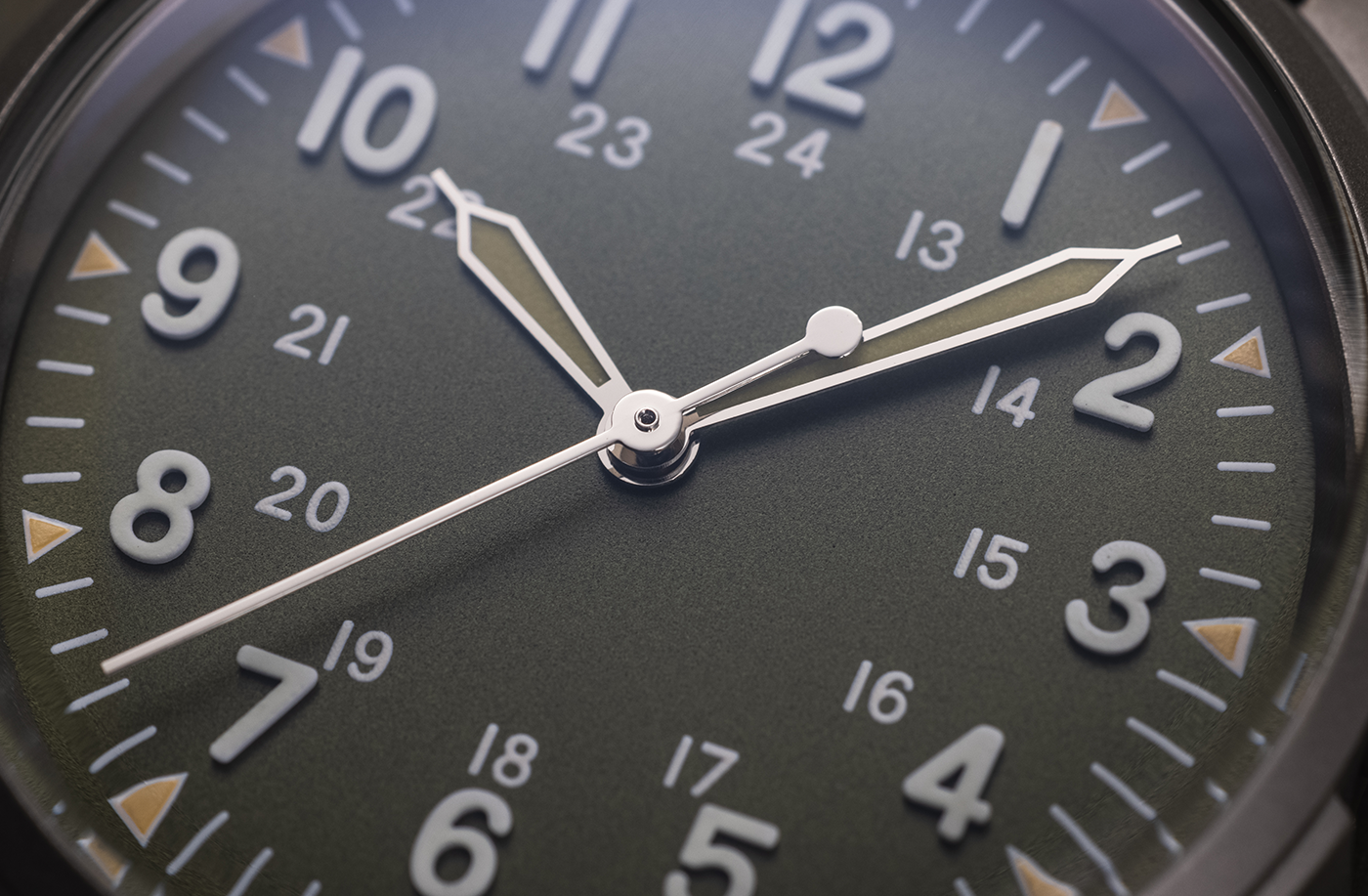 The Jungle Field pays hommage to the iconic GG-W-113 design developed by the US-Military for its pilots in 1967. Featuring a 24H inner-ring and absolute legibility of the indexes, the "Field" in Jungle Field is pretty self-explanatory.