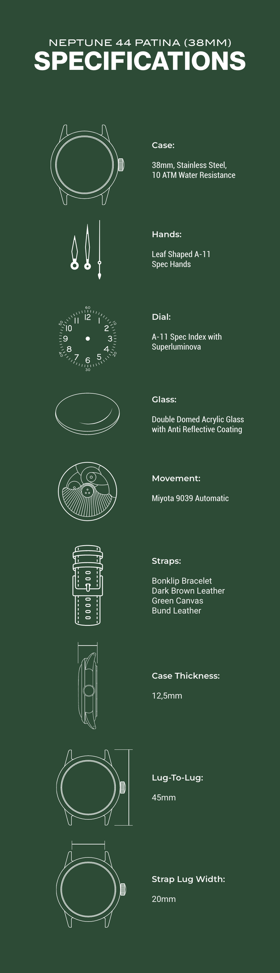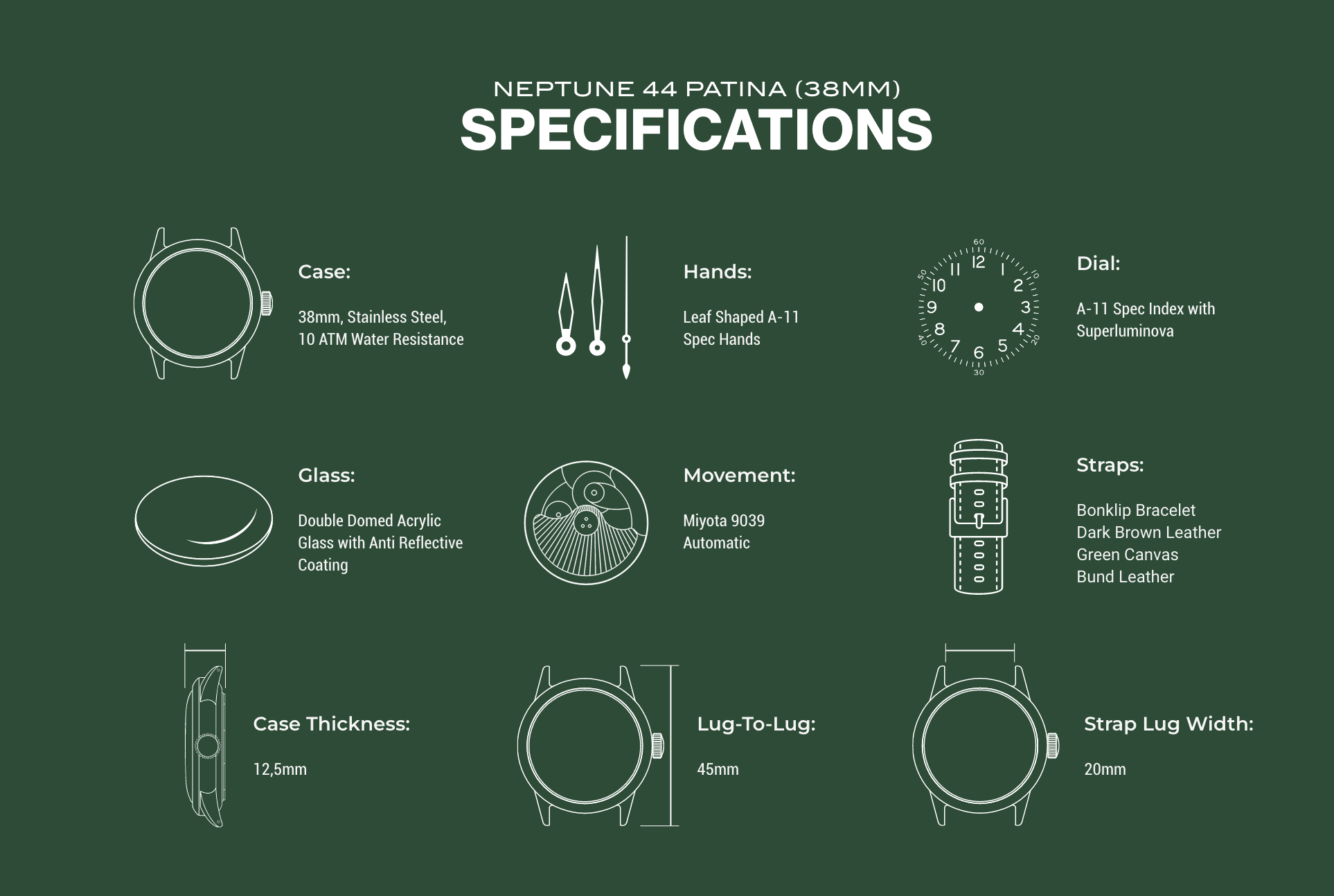 The Neptune-44 isn't just inspired by history, it's marked by it. In a first-of-its-kind process, each case was submerged off the coast of Utah Beach, Normandy, by re-using oyster farming methods. Exposed to the same salt, sun and sand that saw the Allies land on June 6, 1944, every case emerges uniquely scarred and darkened; not by design, but by time and tide.