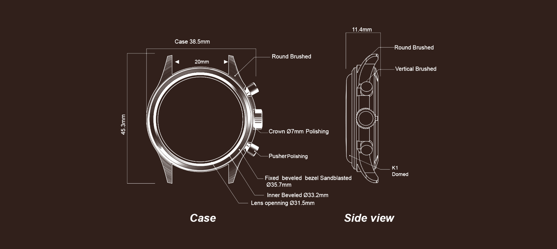 | Dial | Popcorn texture with Vinyl Sub-Dials - Super Luminova Indexes |