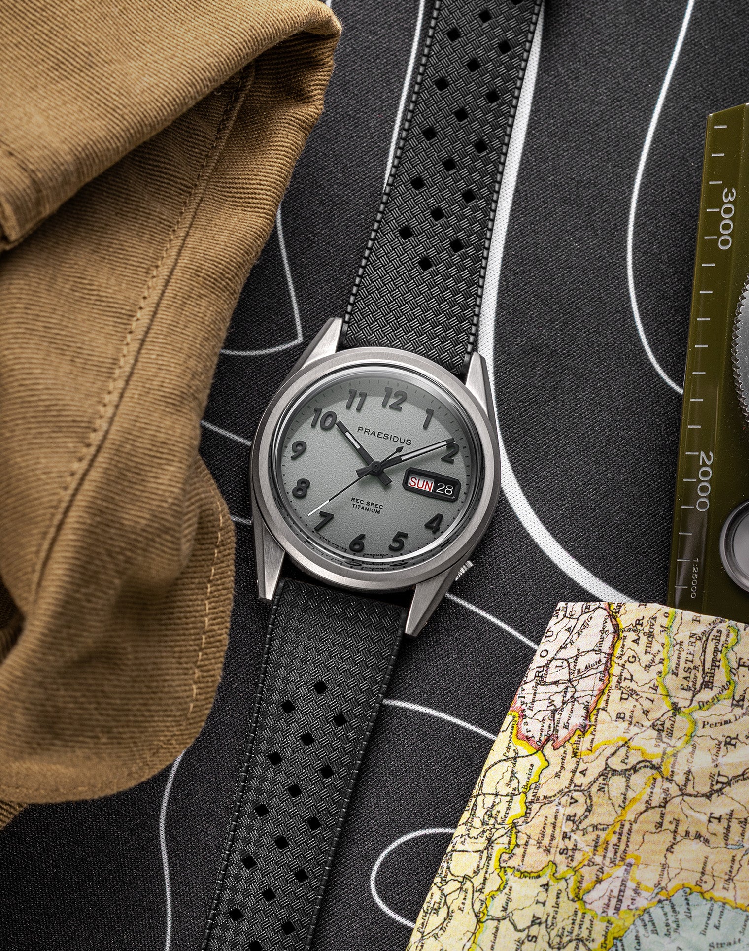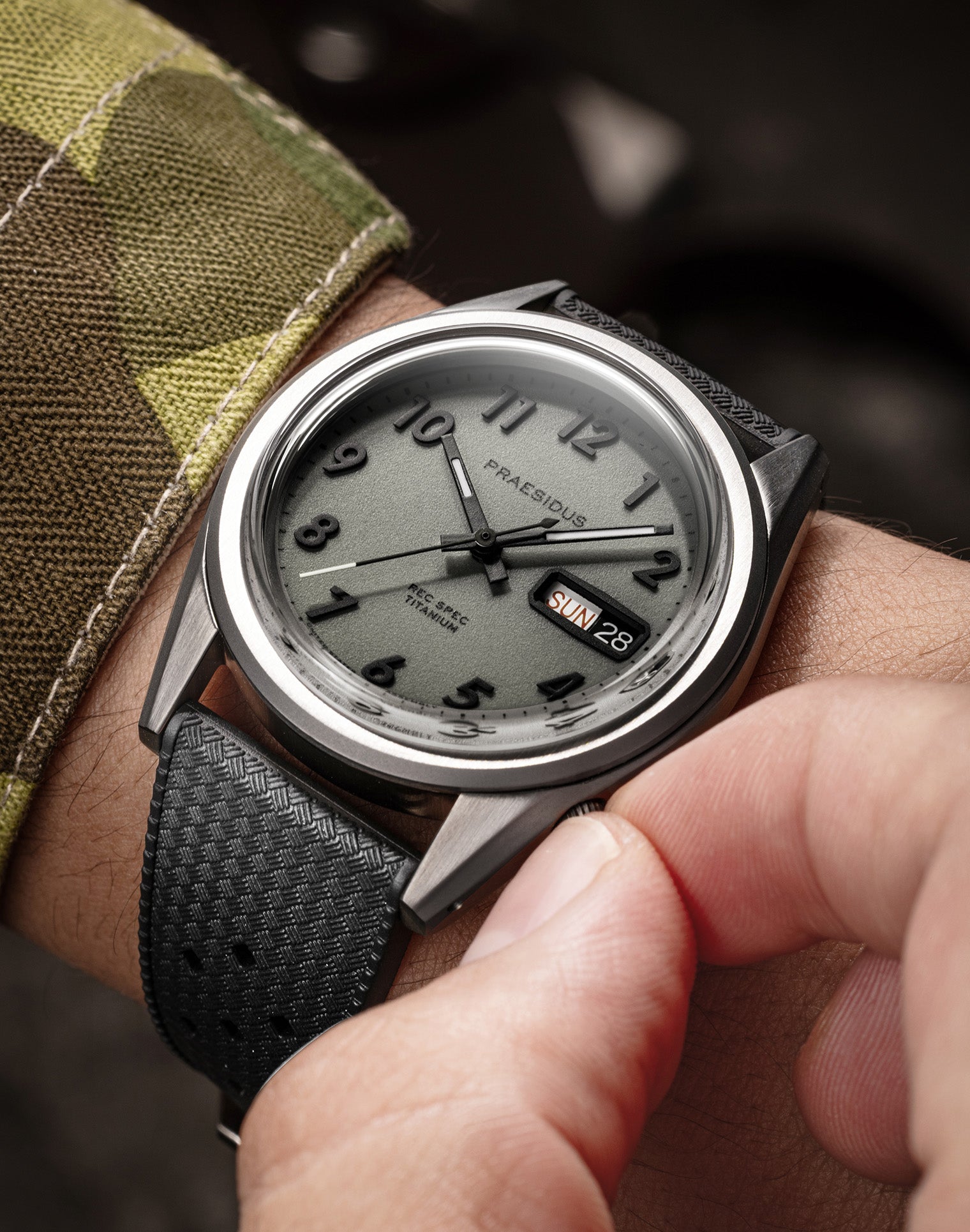 The Rec Spec EX retains the rugged DNA of the original MACV-SOG-inspired platform but is reimagined in ultra-light, corrosion-resistant Grade 2 Titanium. Its matte bead-blasted case finish offers a stealthy, non-reflective profile ideal for field use, delivering a purposeful tool-watch feel without excess weight.