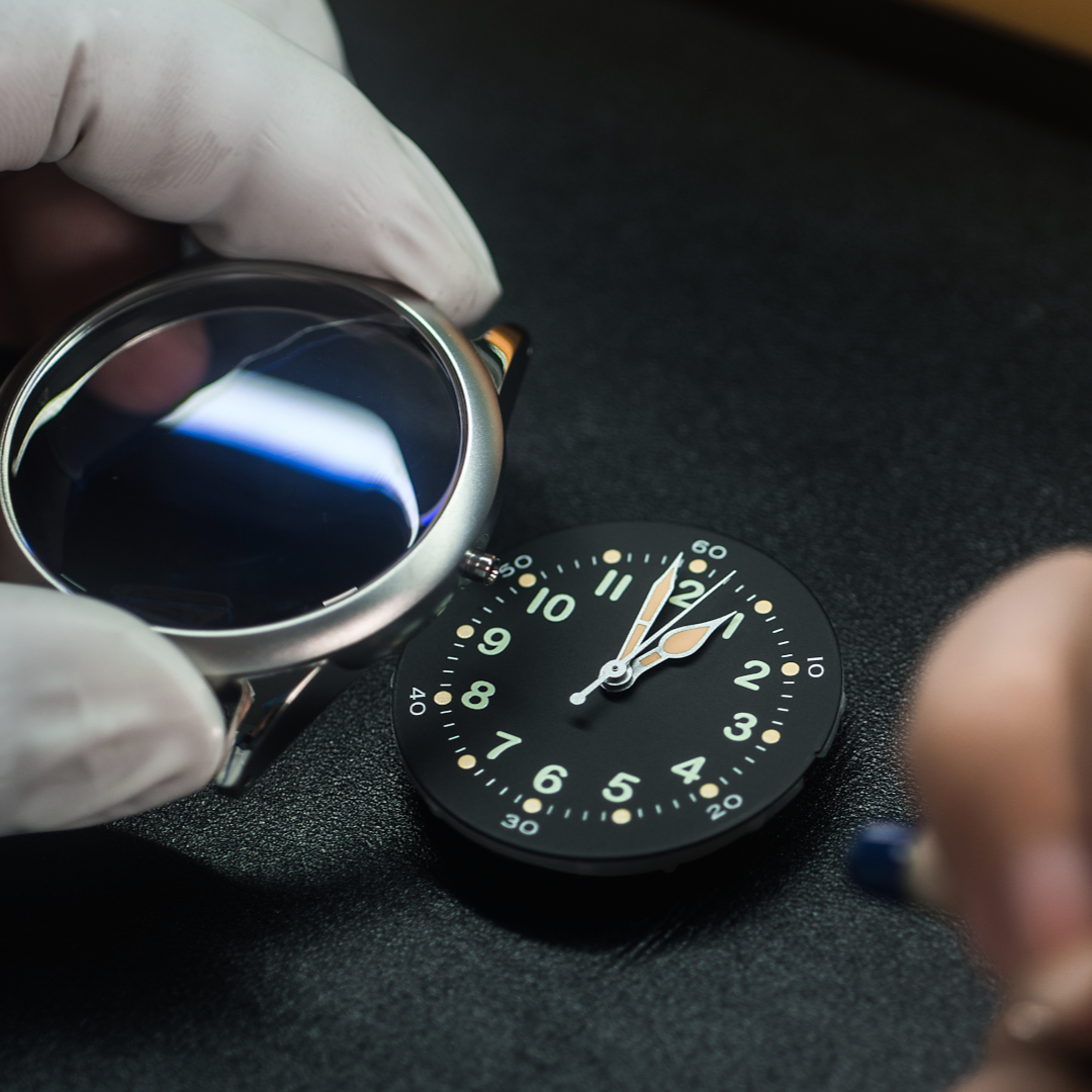 Thanks to our expertise & quality materials your watch will require very little day-to-day care. You can help preserve its lustre by washing the case and bracelet from time to time using soapy water and a soft brush. Before cleaning your watch, always ensure that the winding crown is properly pushed down to guarantee waterproofness.