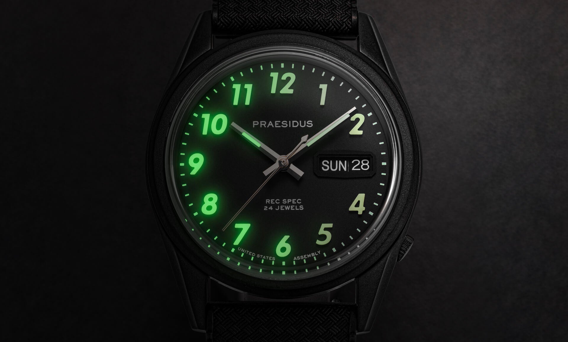 The Rec Spec Night Vision – Midnight Black stands apart with its tactical stealth approach, featuring a distinctive matte black dial that disappears into the shadows while remaining instantly readable when needed. Unlike its DNC-patterned siblings, this model embraces total darkness with its phantom-like presence and zero-reflection philosophy.