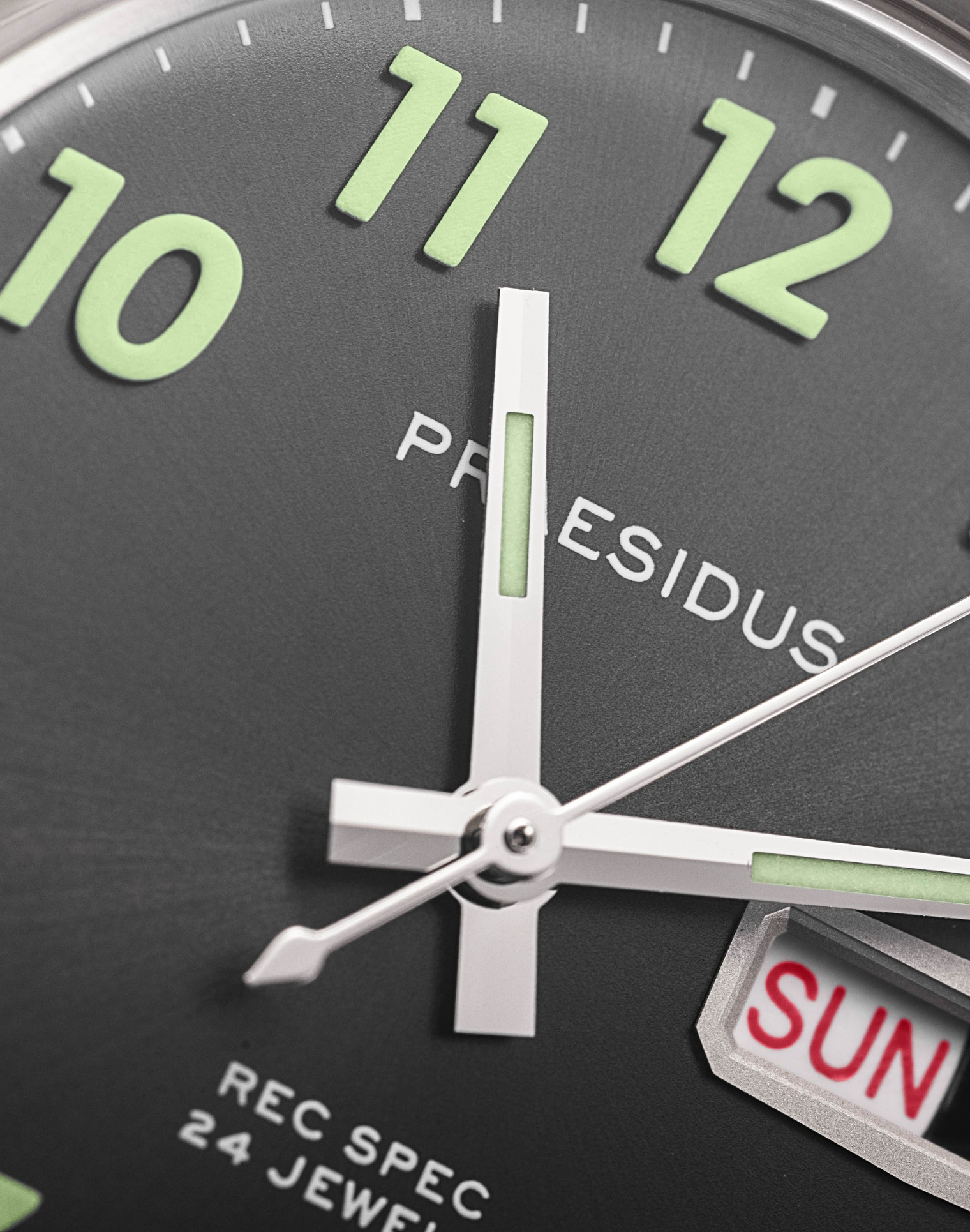 The Rec Spec OG Sunray is truly the closest homage we’ve done to the MACV-SOG watches of the 60s. Featuring a fluorescent green hue on the indexes & hands, we’ve used the Super-Luminous Green to mimic the original radioactive Tritium paint that the 1967 version used. Furthermore, we’ve gone for a dress-watch dark-gray sunray dial. Intuitively, this kind of shiny dial finish shouldn’t have been on a field watch. It seems, pretty obvious that the original MACV-SOG watches were meant to be dress watches and not field watches. And its that story that we found worth telling through our re-edit.
