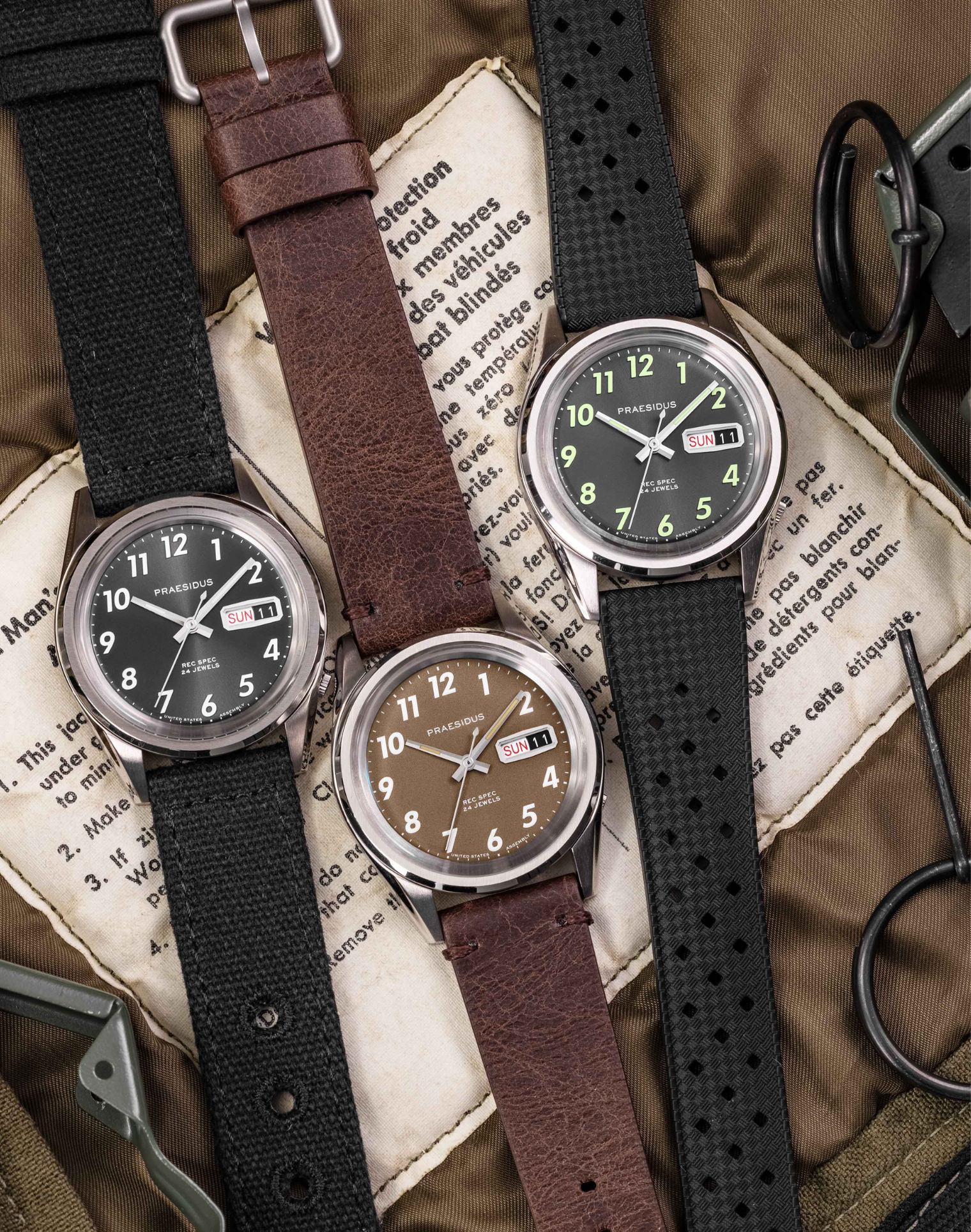 Powered by a workhorse NH36 TMI movement with 39-hours of power reserve, hacking & a day-date complication just like the original 1960s versions.