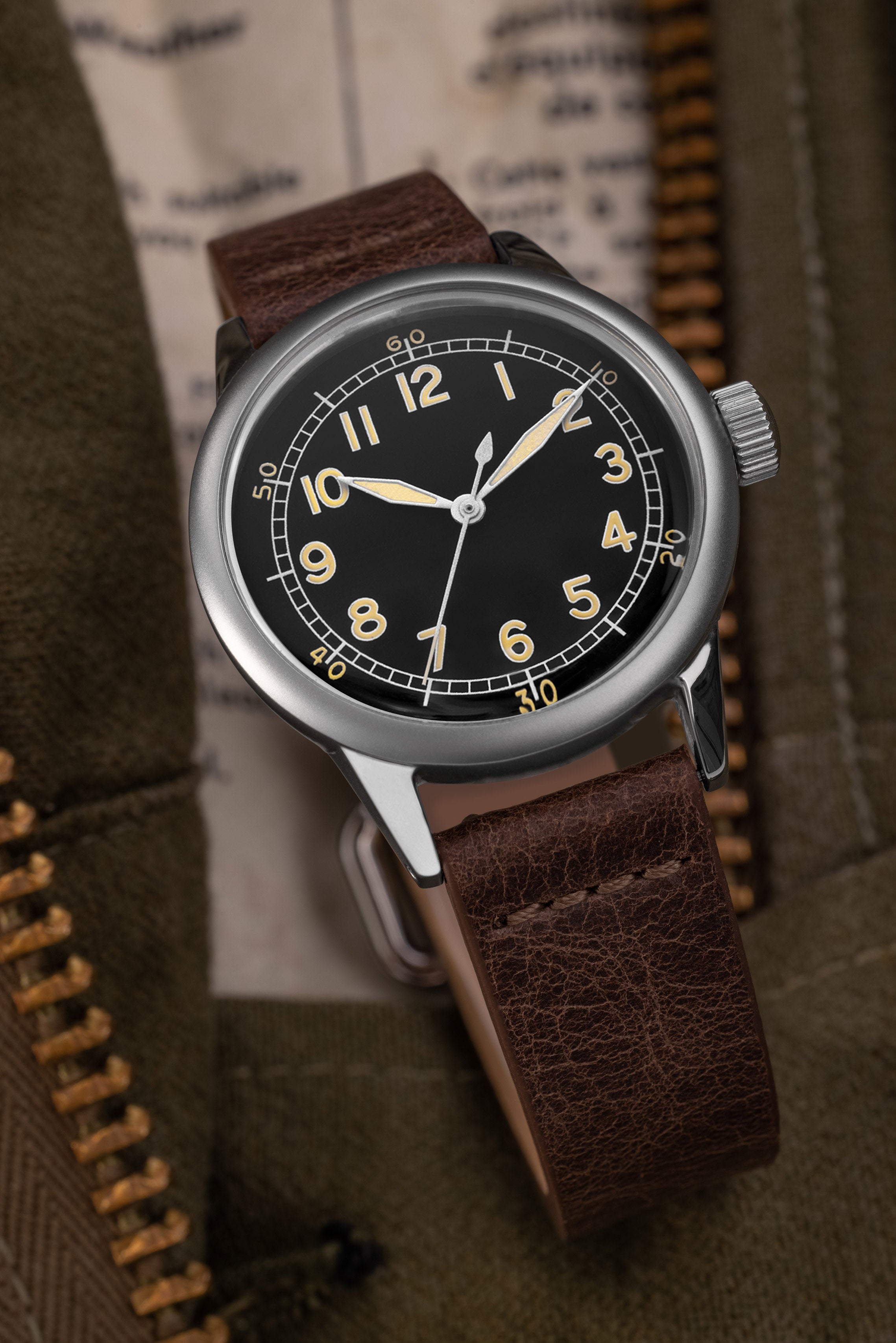Originally, the A-11s were equipped with a basic manual-wind hackable movement. These movements were sometimes unreliable and, fragile considering the rigors of combat. Thats why we’ve chosen to equip our A-11 Spec 2.C with an ultra-precise and rugged American Ameriquartz 6130 Quartz movement from FTS based out of Arizona. Just like the originals in the 1940s, the A-11 Spec 2.C will have an American movement and will be assembled in our own assembly line based out of Pennsylvania. Who said American watchmaking was dead?