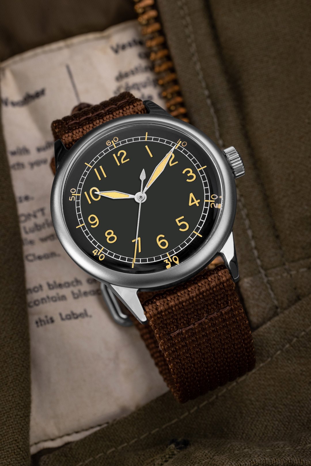 Originally, the A-11s were equipped with a basic manual-wind hackable movement. These movements were sometimes unreliable and, fragile considering the rigors of combat. Thats why we’ve chosen to equip our A-11 Spec 2.C with an ultra-precise and rugged American Ameriquartz 6130 Quartz movement from FTS based out of Arizona. Just like the originals in the 1940s, the A-11 Spec 2.C will have an American movement and will be assembled in our own assembly line based out of Pennsylvania. Who said American watchmaking was dead?
